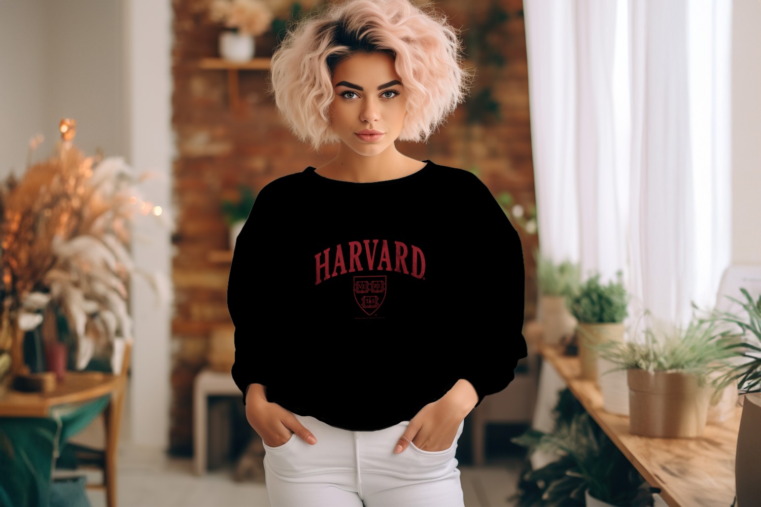 Sweat oversize coton bio Femme Harvard avec un design de Harvard Arc Écusson Used Contour rouge