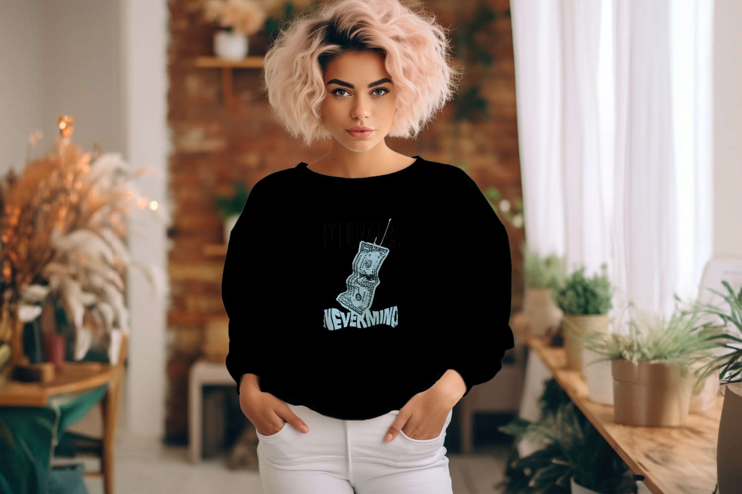 Sweat oversize coton bio Femme Nirvana avec un design de Nirvana Nevermind noir