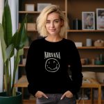 Sweat oversize coton bio Femme Nirvana avec un design de Nirvana Smiley Artwork blanc
