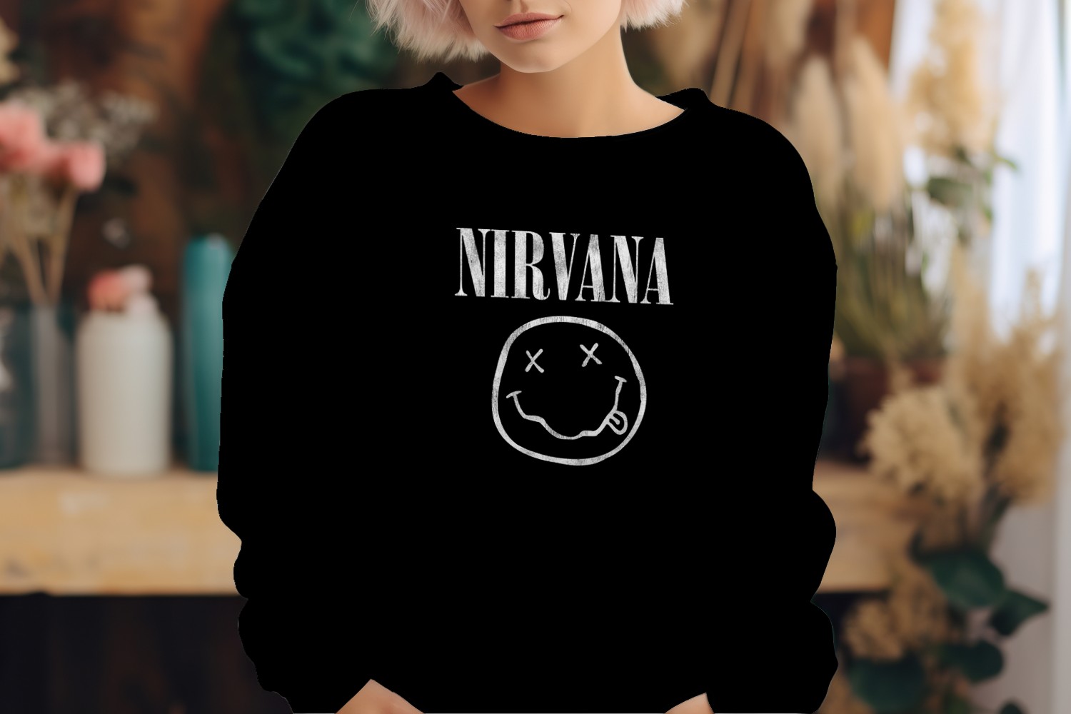 Sweat oversize coton bio Femme Nirvana avec un design de Nirvana Smiley blanc