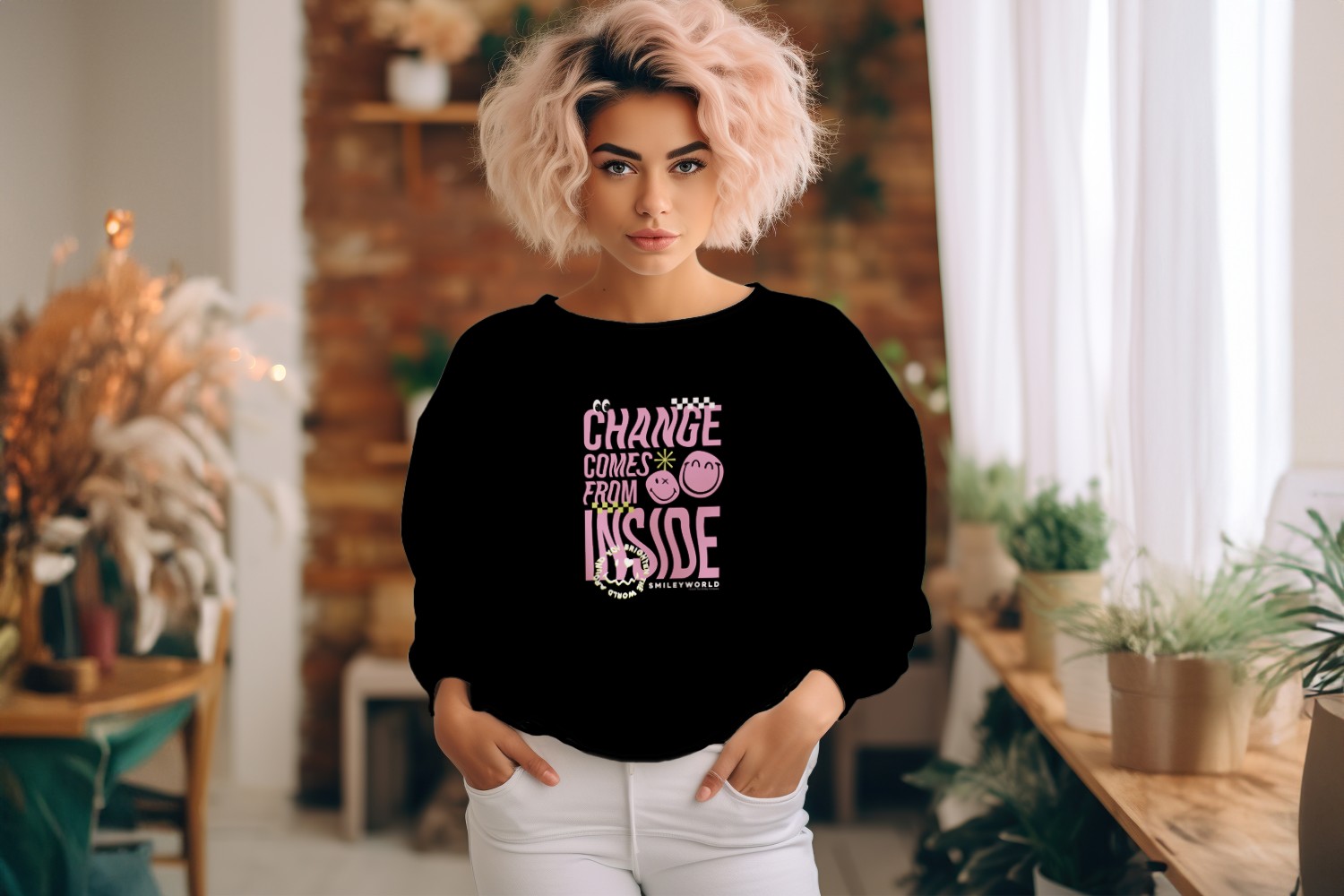 Sweat oversize coton bio Femme Smiley World avec un design de Smiley World Chance Comes From Inside blanc