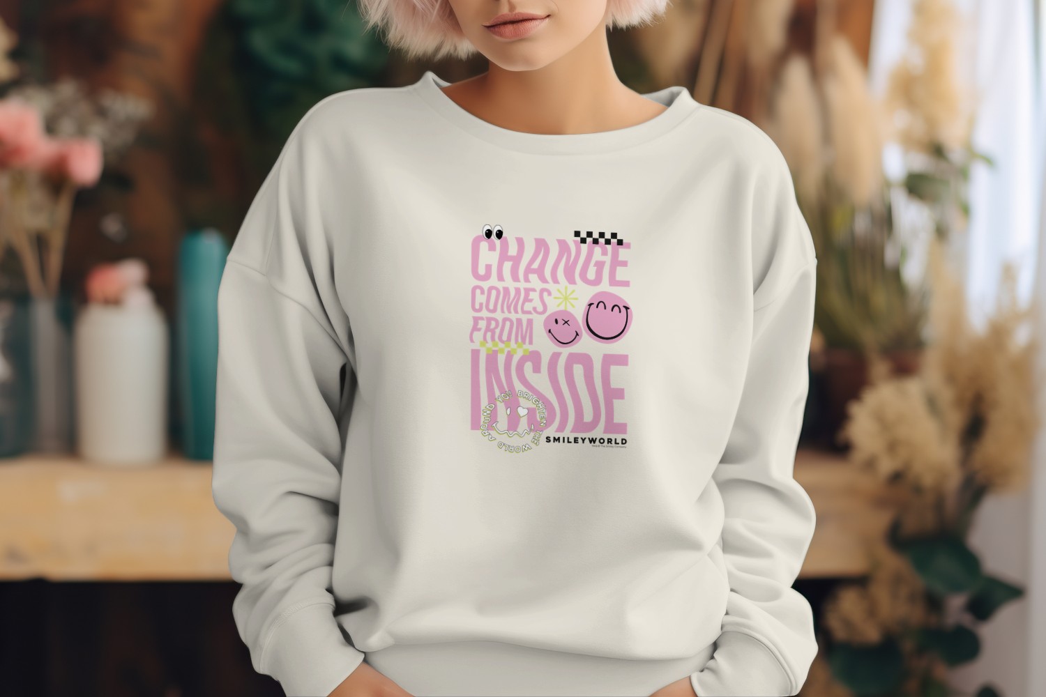 Sweat oversize coton bio Femme Smiley World avec un design de Smiley World Chance Comes From Inside noir