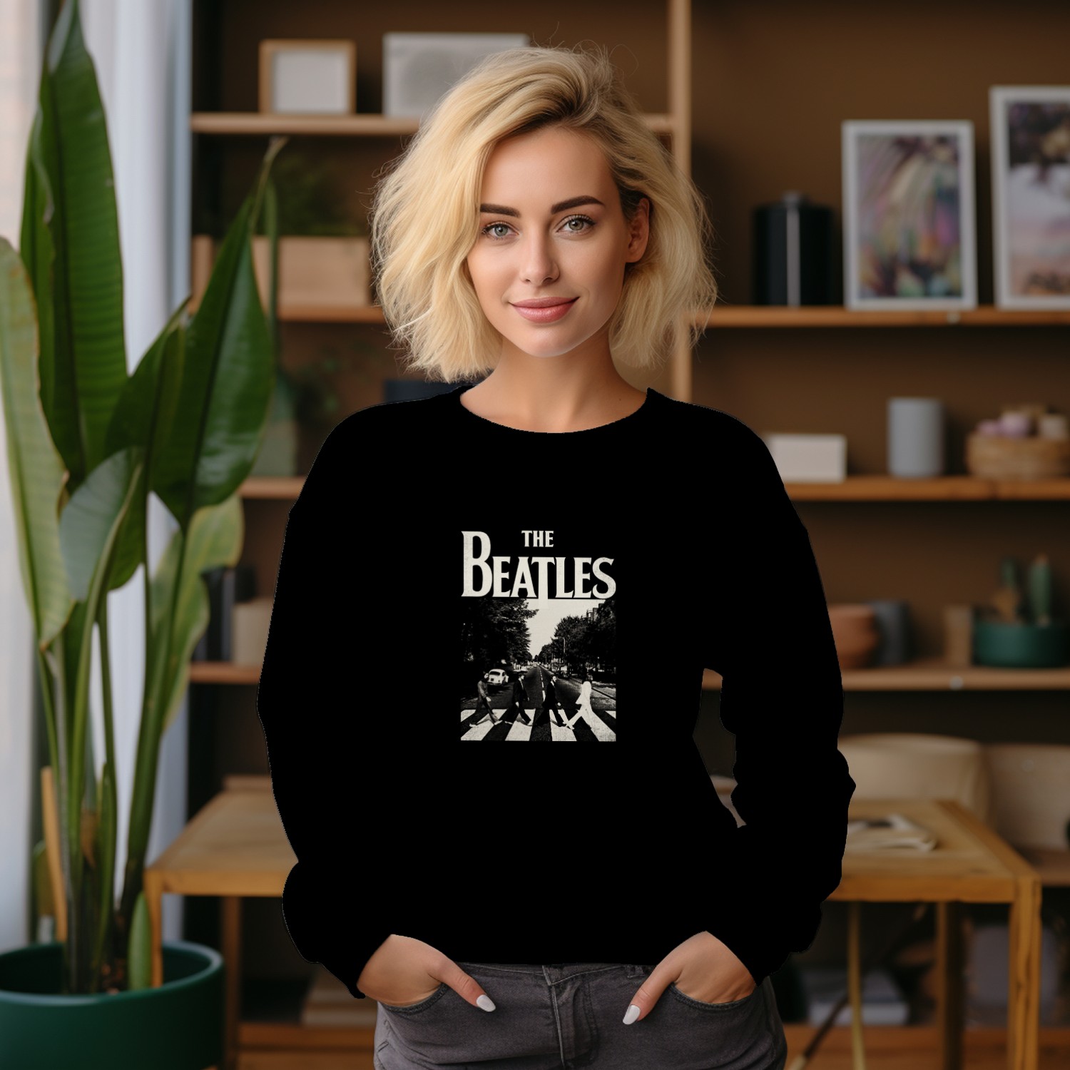 Sweat oversize coton bio Femme The Beatles avec un design de The Beatles Crossing Road blanc