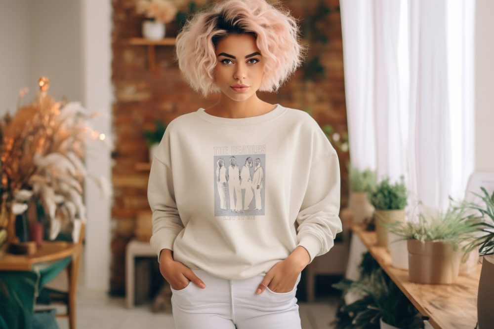Sweat oversize coton bio Femme The Beatles avec un design de The Beatles Let It Be blanc