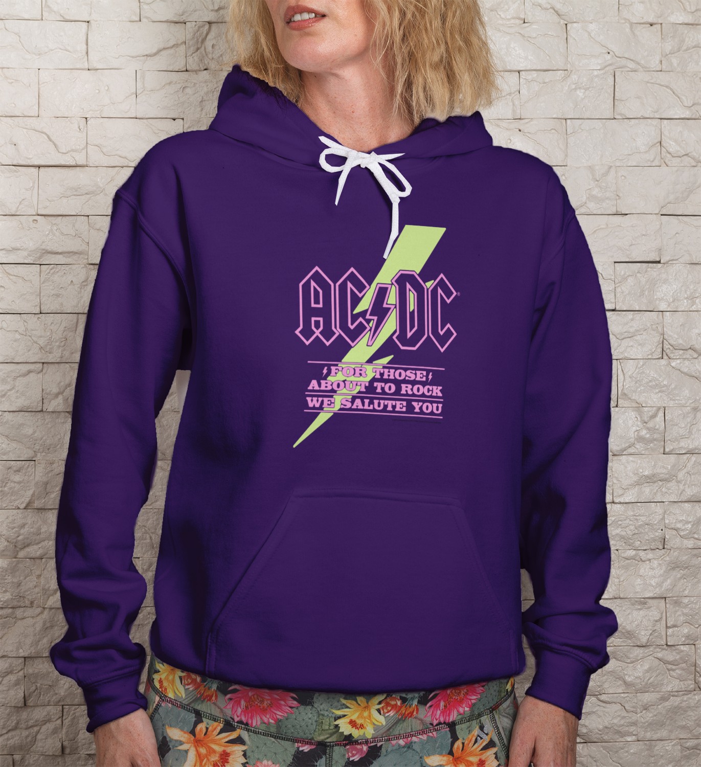 Sweat-shirt à capuche femme ACDC avec un design de ACDC For those About To Rock vert