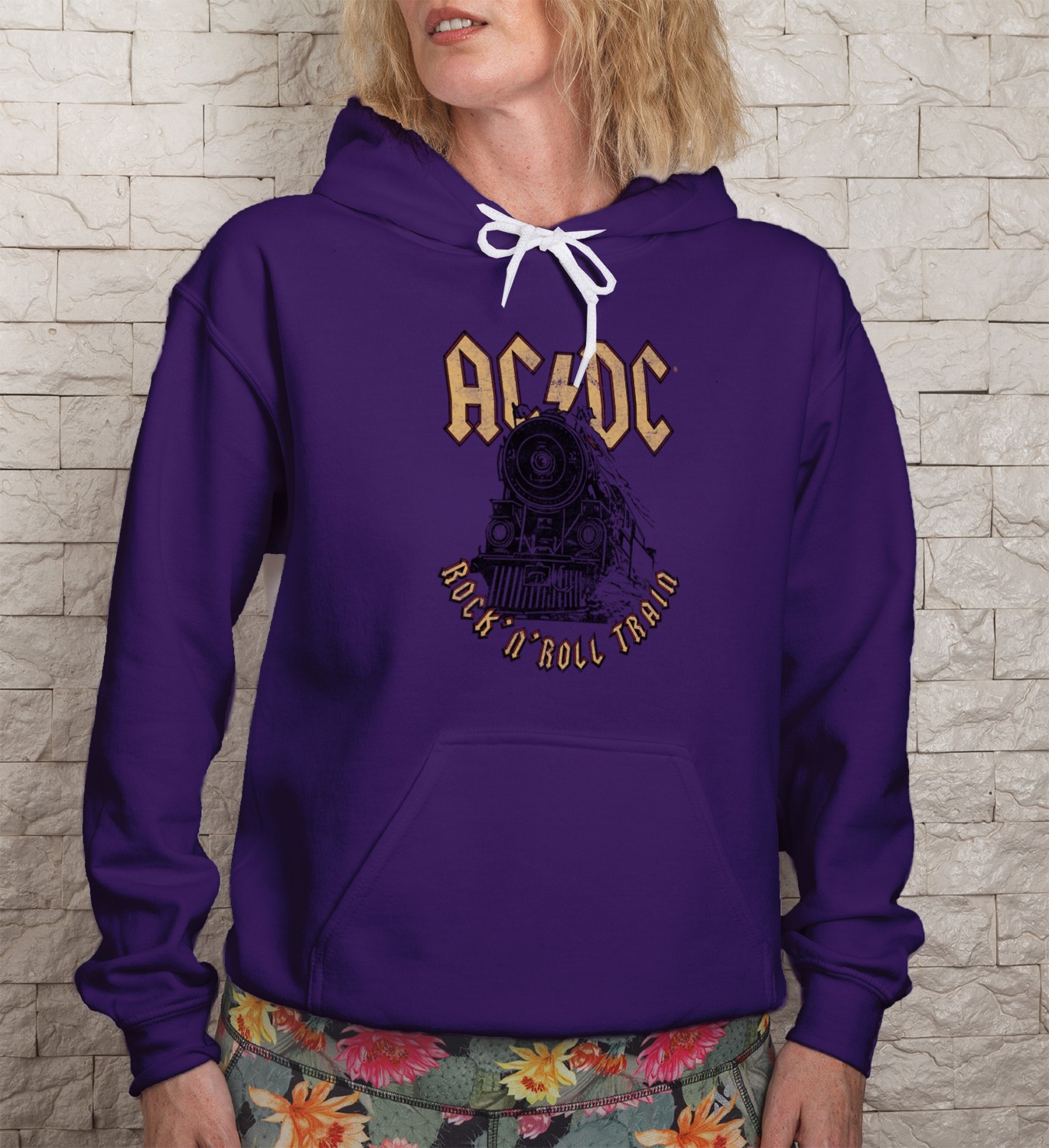 Sweat-shirt à capuche Femme ACDC avec un design de ACDC Rock n’ Roll Train noir