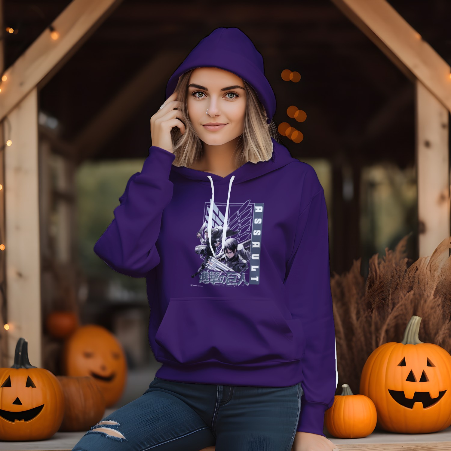 Sweat-shirt à capuche Femme Attack On Titan avec un design de Attack On Titan Assault blanc