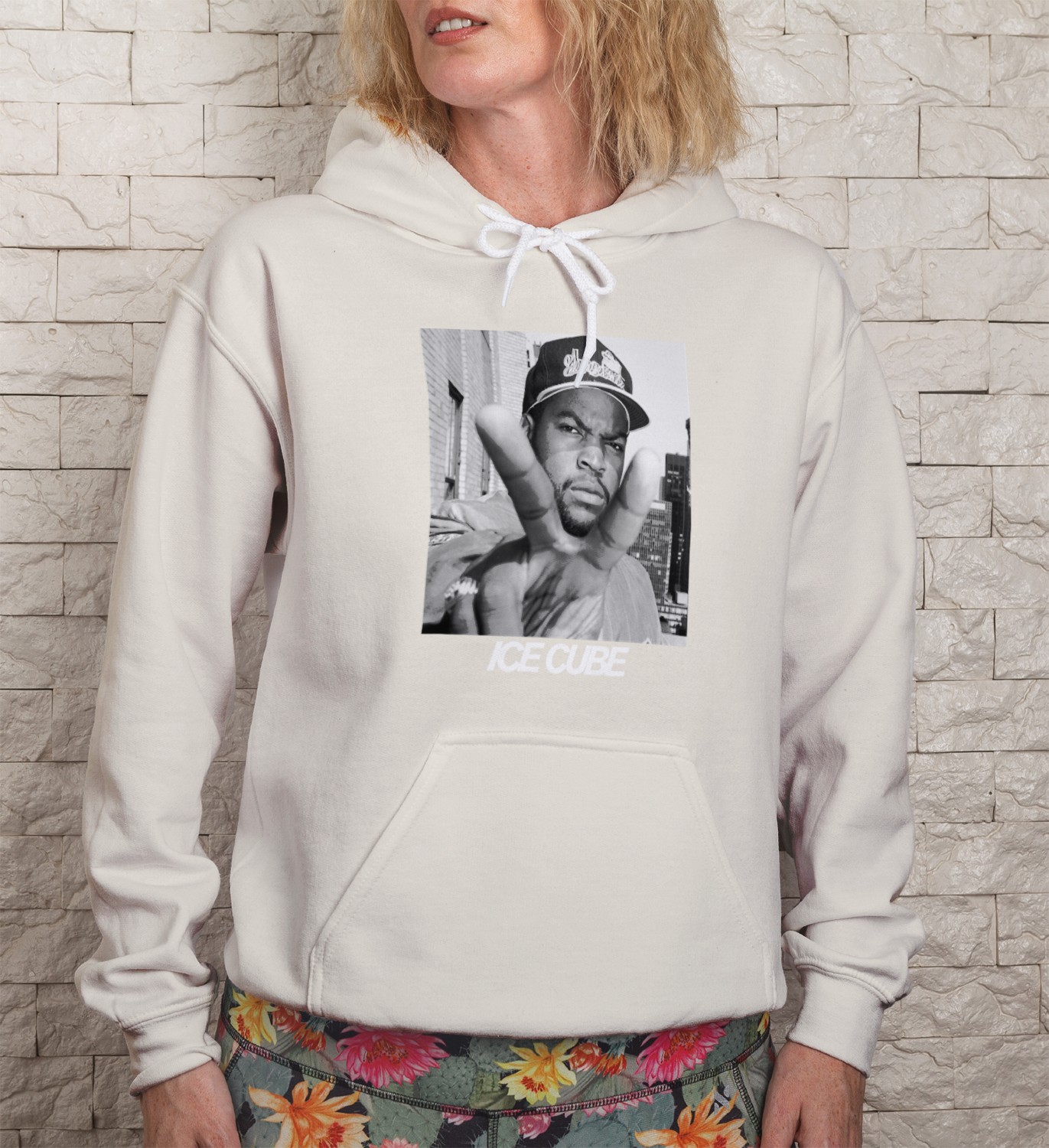 Sweat-shirt à capuche femme Ice Cube avec un design de Ice Cube Peace n&b
