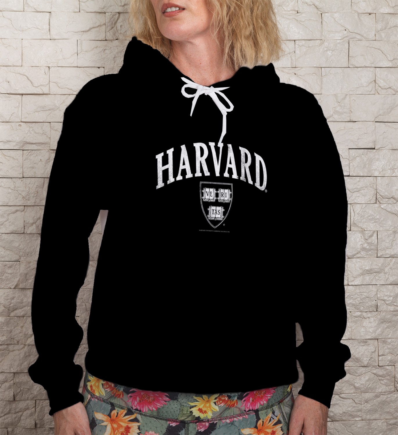 Sweat-shirt à capuche Femme Harvard avec un design de Harvard Arc Écusson Used blanc