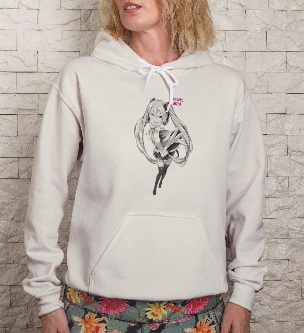 Sweat-shirt à capuche Femme Hatsune Miku avec un design de Hatsune Miku Vedette gris