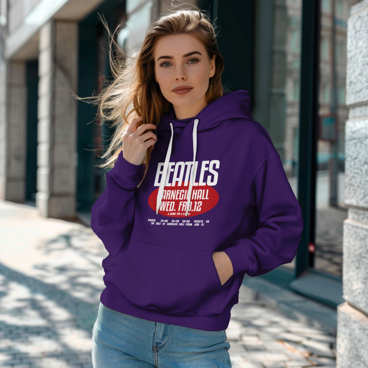 Sweat-shirt à capuche Femme The Beatles avec un design de The Beatles Carnegie Hall rouge
