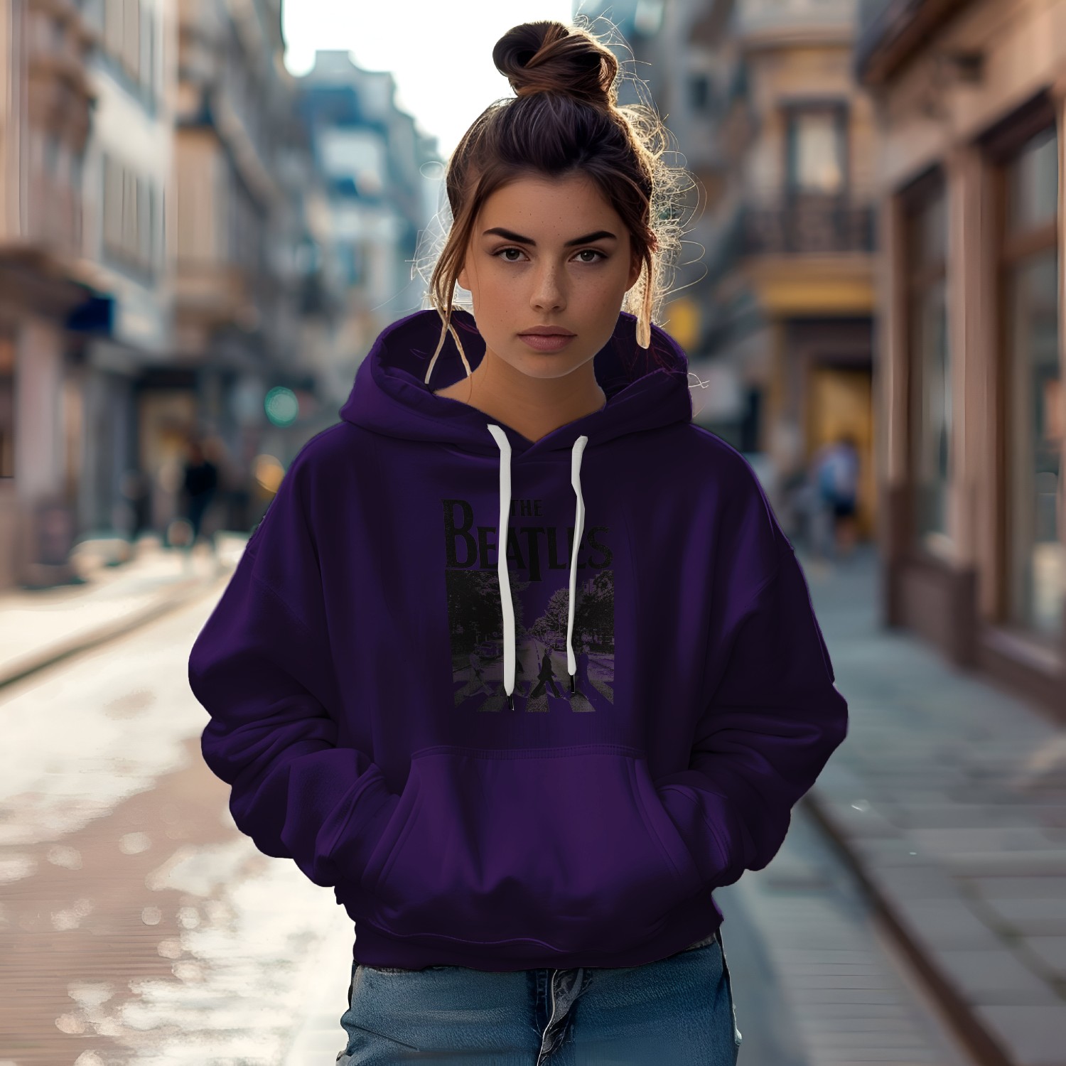 Sweat-shirt à capuche Femme The Beatles avec un design de The Beatles Crossing Road noir
