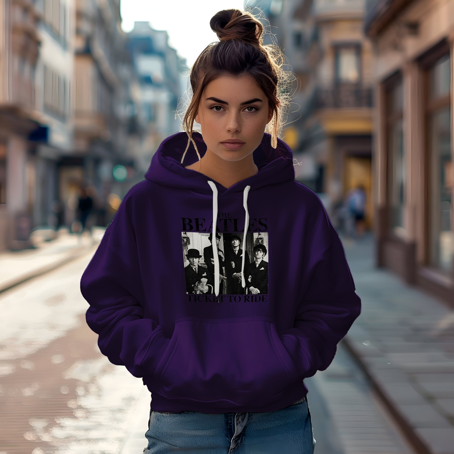 Sweat-shirt à capuche Femme The Beatles avec un design de The Beatles Ticket To Ride noir