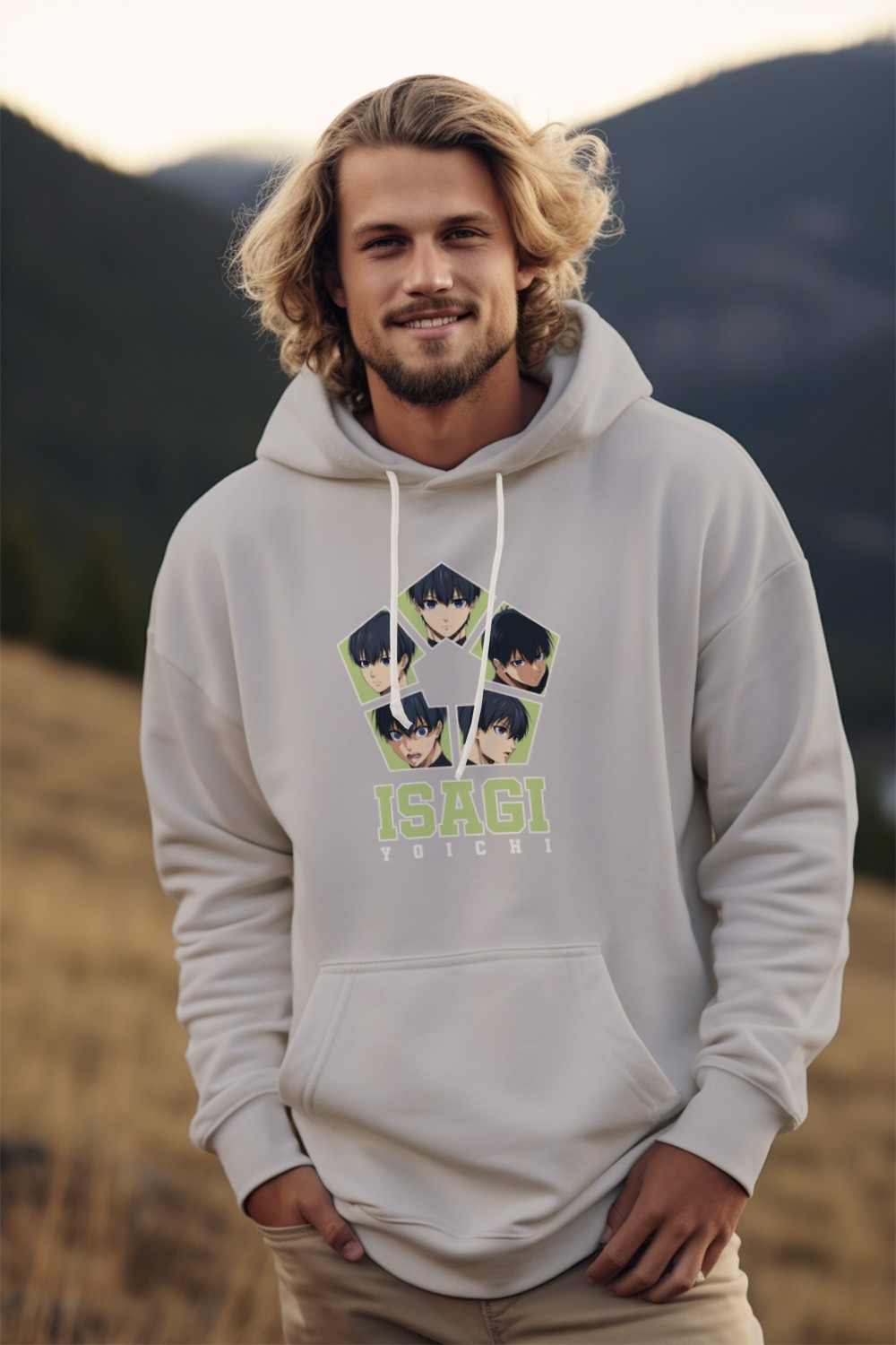 Sweat-shirt à capuche Homme Bluelock avec un design de Bluelock Isagi Yoichi blanc