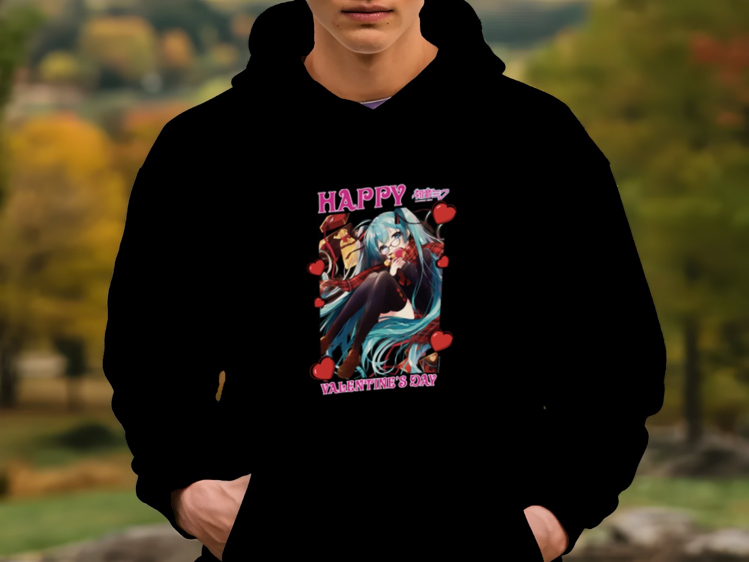 Sweat-shirt à capuche Homme Hatsune Miku avec un design de Hatsune Miku Valentine