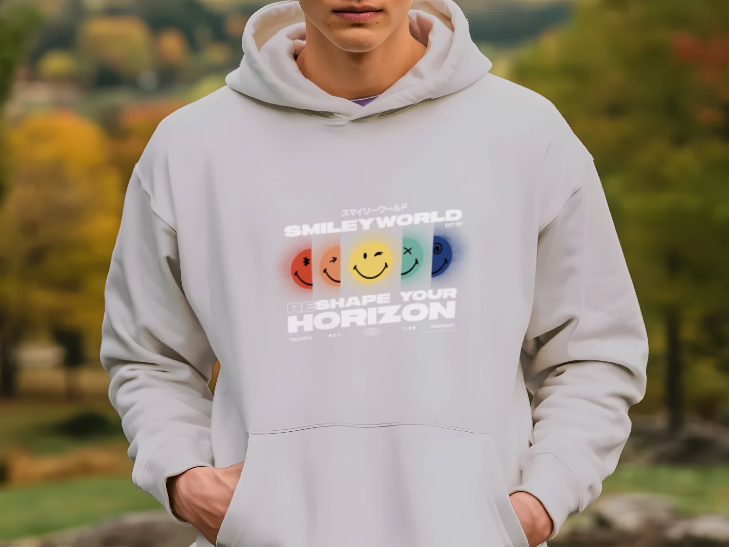 Sweat-shirt à capuche Homme Smiley World avec un design de Smiley World Reshape Your Horizon blanc