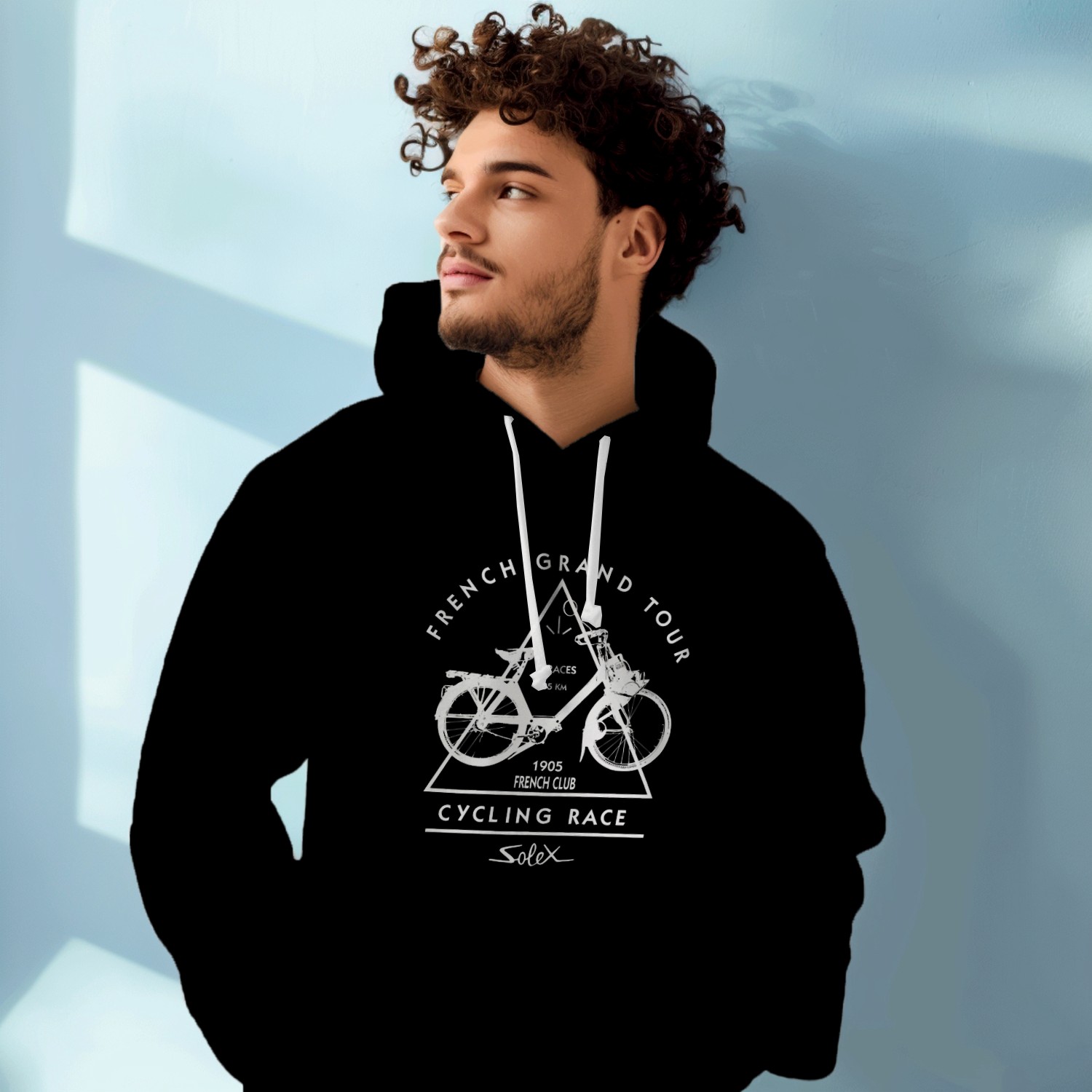 Sweat-shirt à capuche Homme Solex avec un design de Solex French Grand Tour blanc