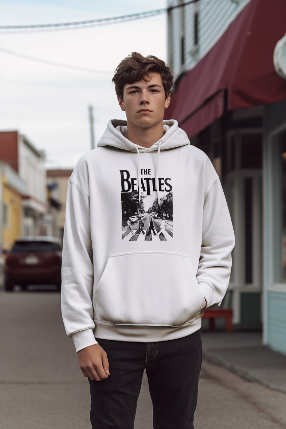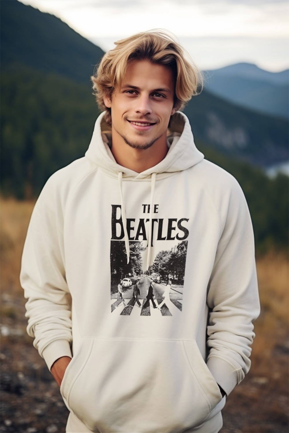 Sweat-shirt à capuche Homme The Beatles avec un design de The Beatles Crossing Road noir
