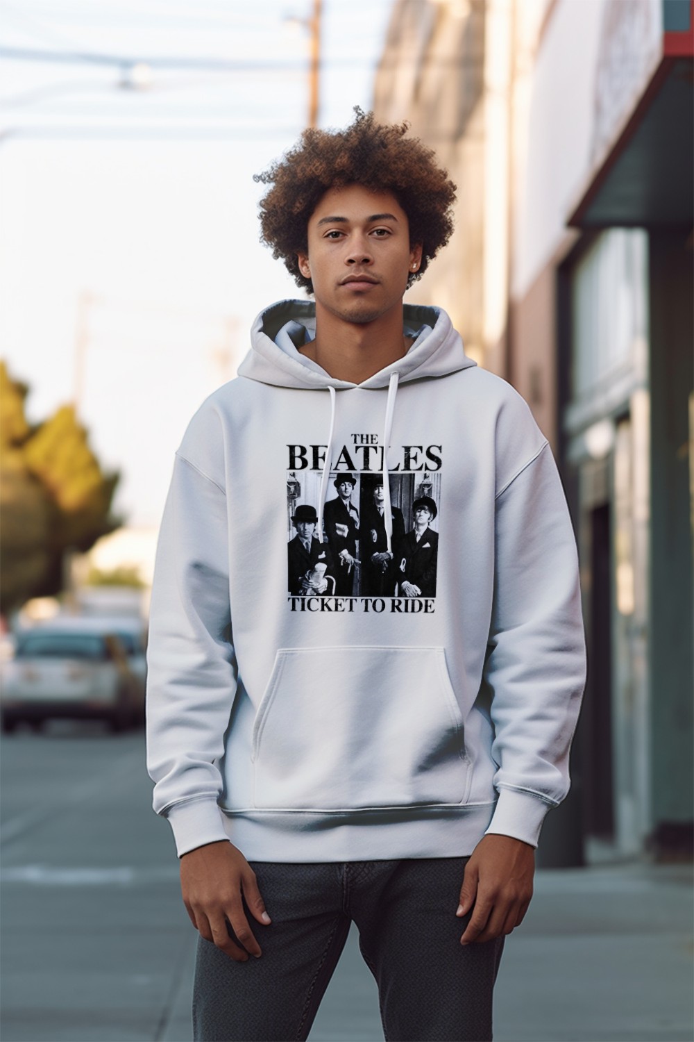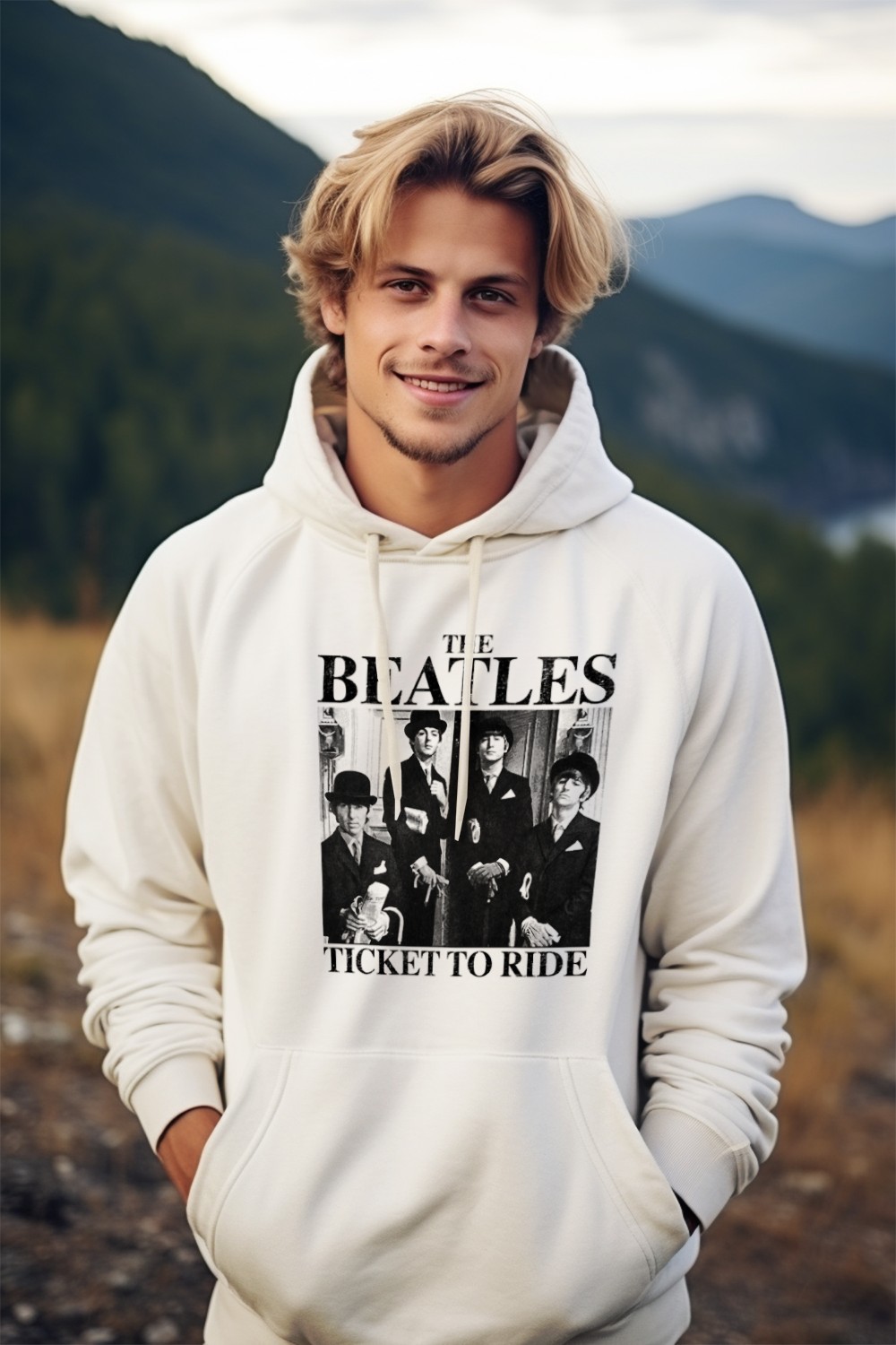 Sweat-shirt à capuche Homme The Beatles avec un design de The Beatles Ticket To Ride noir