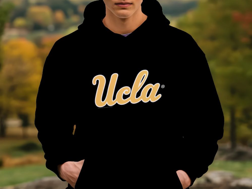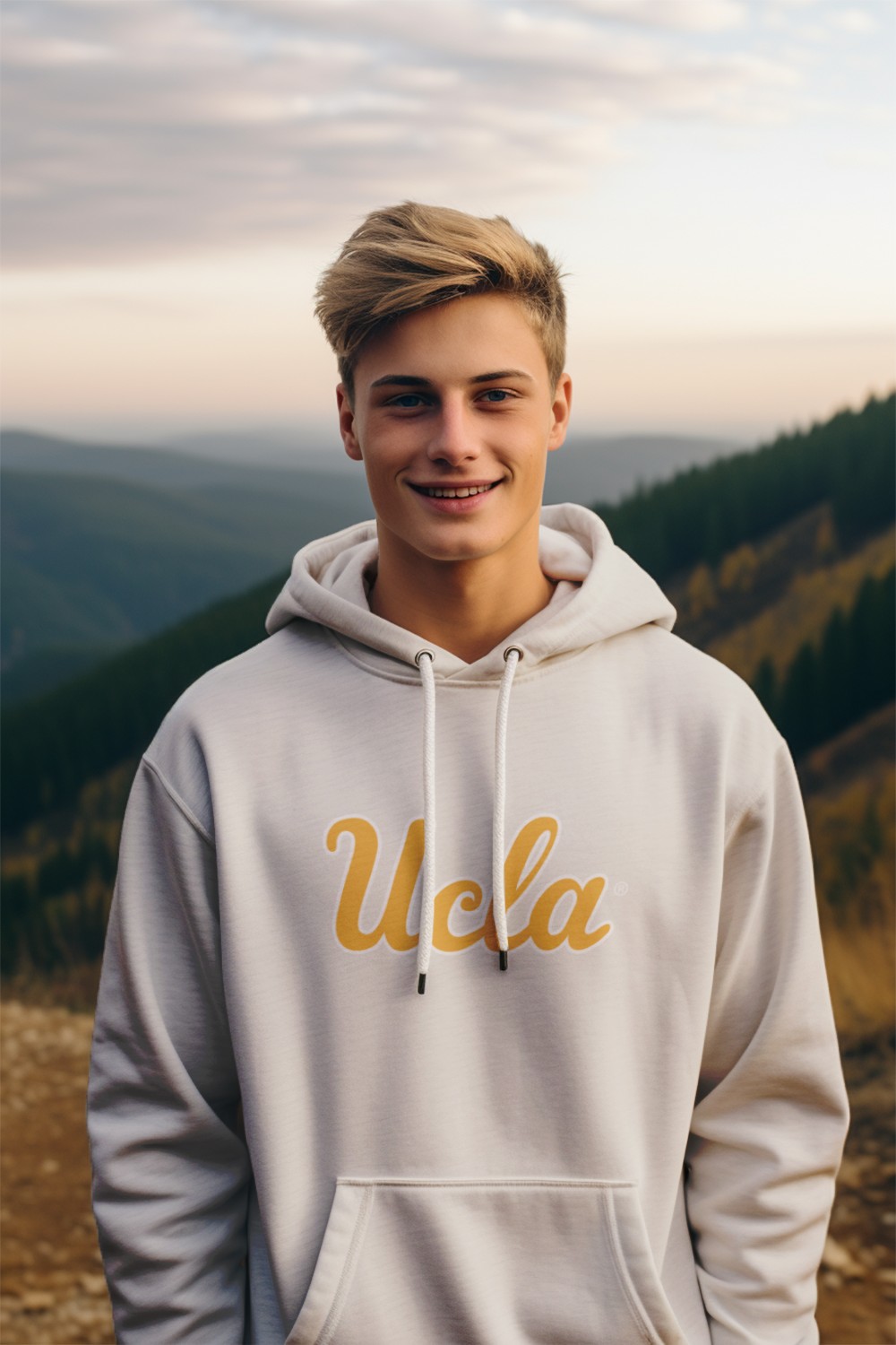 Sweat-shirt à capuche Homme UCLA avec un design de UCLA Curvy jaune contour blanc
