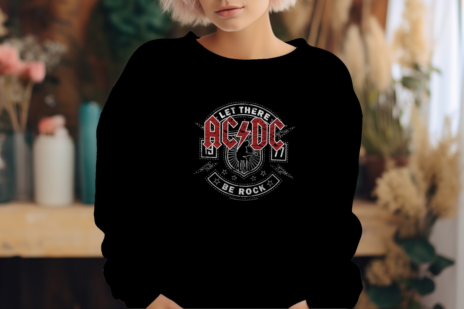 Sweat oversize coton bio femme ACDC avec un design de ACDC Let There Be Rock blanc