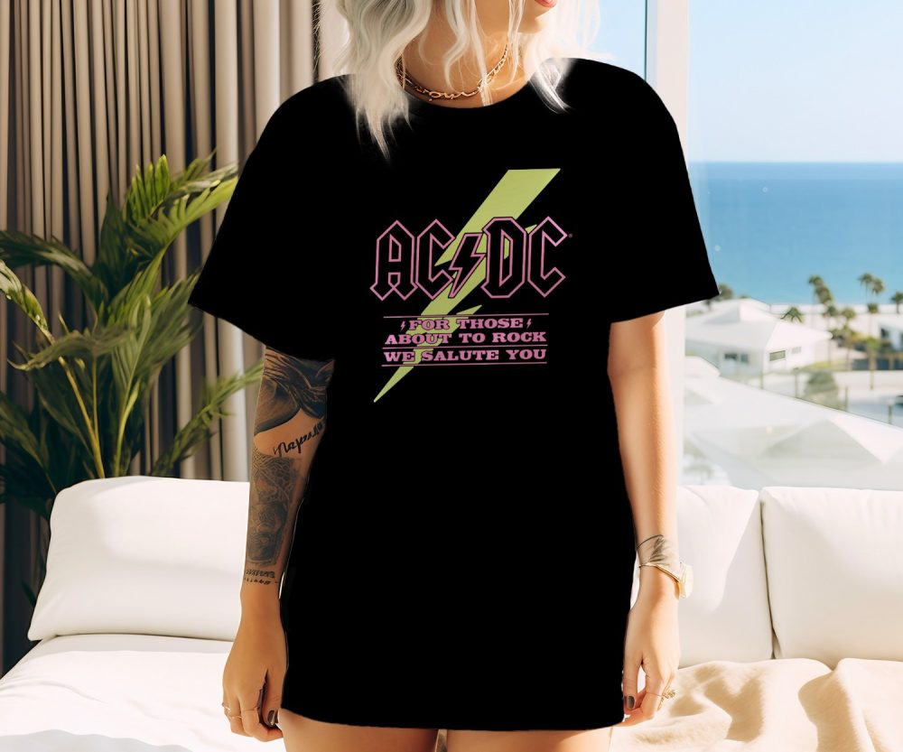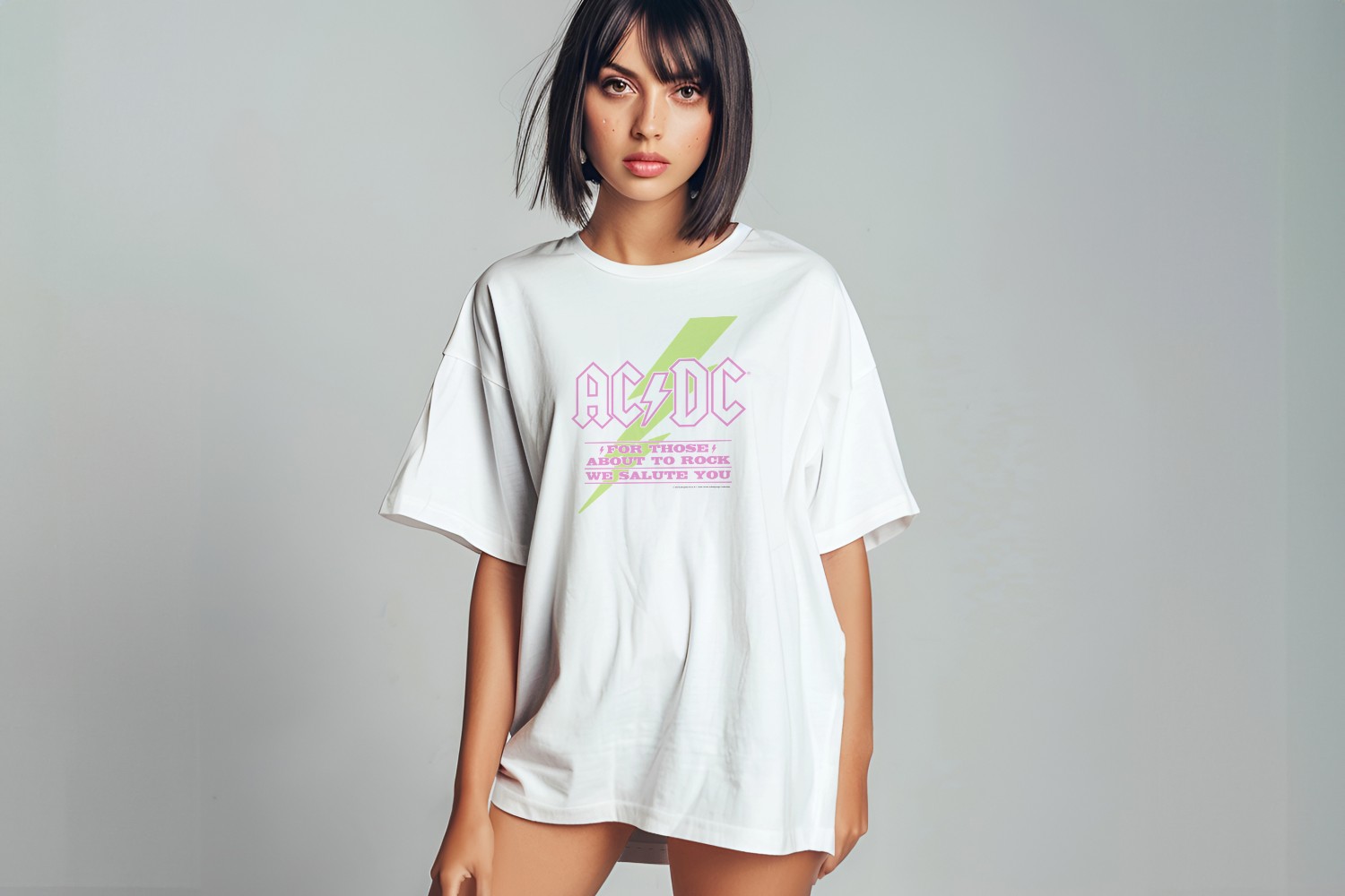 T-shirt bio oversize Femme ACDC avec un design de ACDC For those About To Rock vert