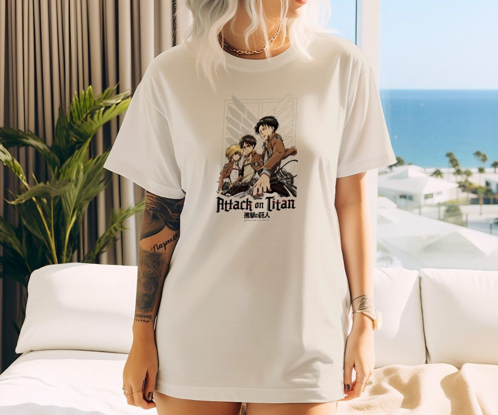 T-shirt bio oversize Femme Attack On Titan avec un design de Attack On Titan Group noir