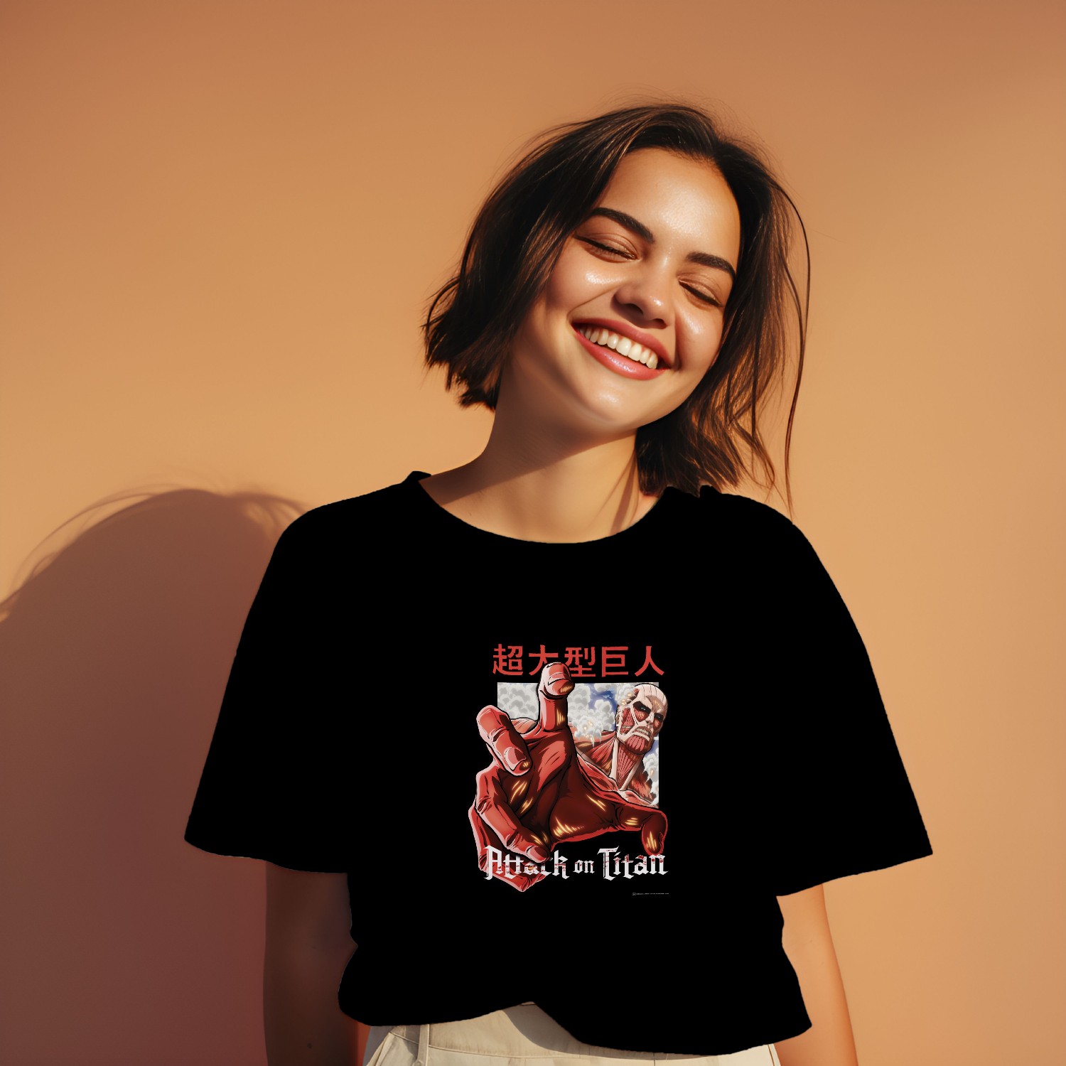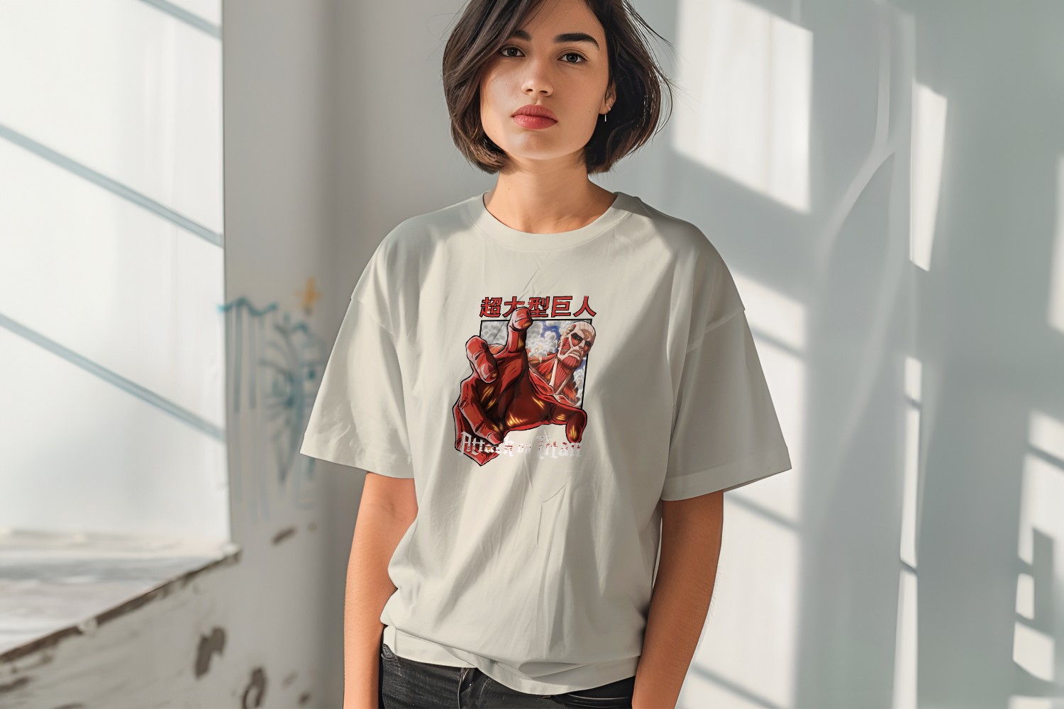 T-shirt bio oversize Femme Attack On Titan avec un design de Attack On Titan Hand blanc