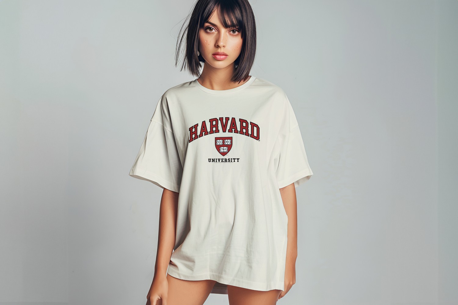 T-shirt bio oversize Femme Harvard avec un design de Harvard Arc Écusson University noir