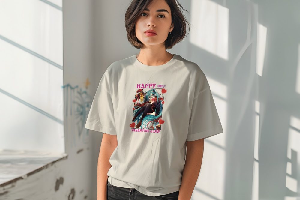 T-shirt bio oversize Femme Hatsune Miku avec un design de Hatsune Miku Valentine