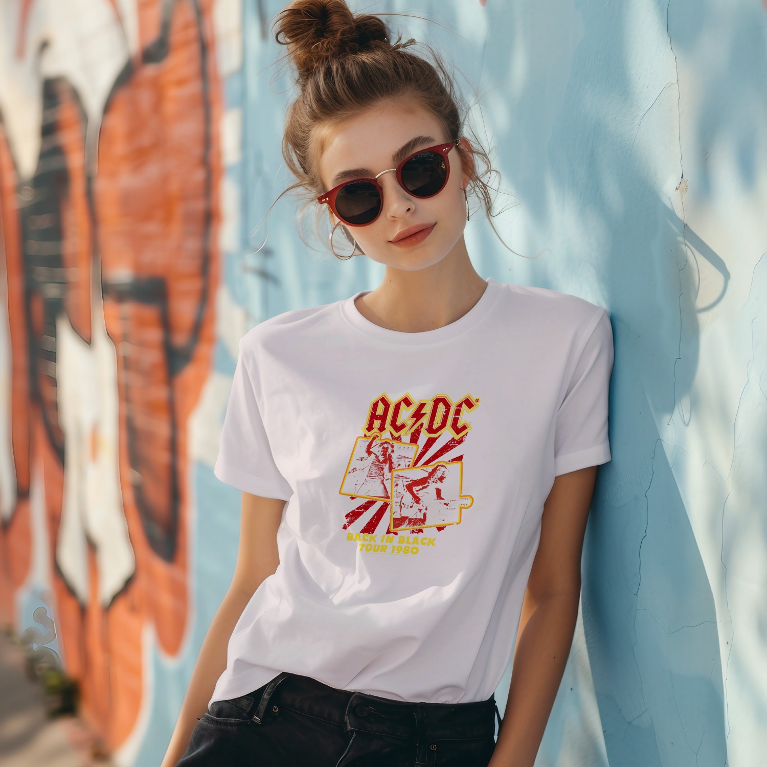 T-shirt femme ACDC avec un design de ACDC Back in Black Tour 1980