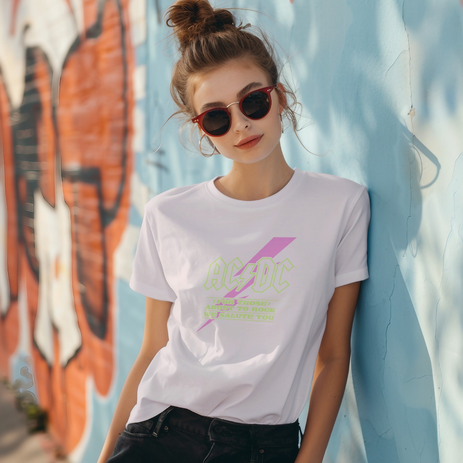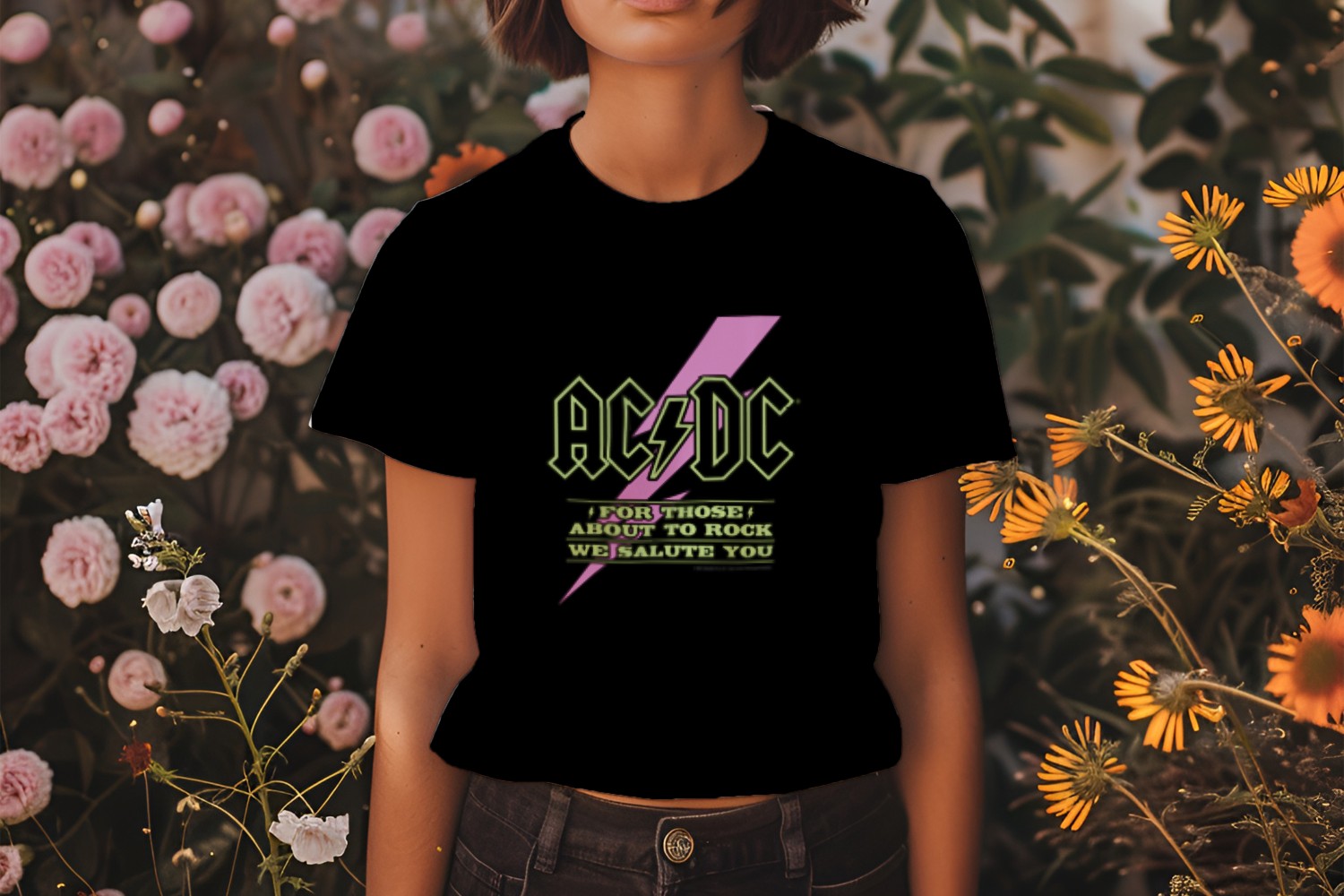 T-shirt femme ACDC avec un design de ACDC For those About To Rock rose