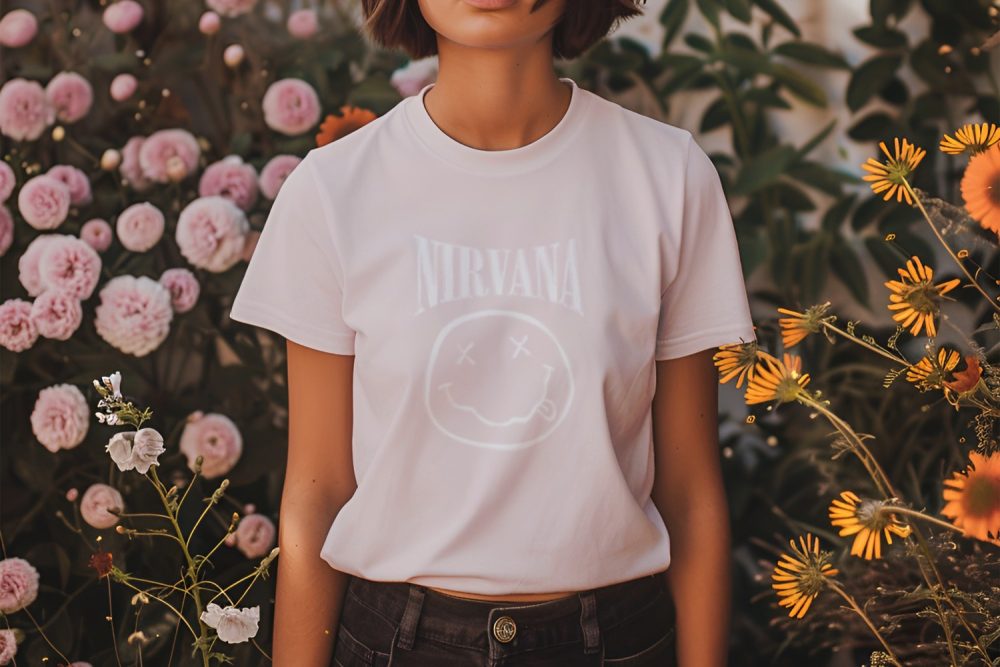 T-shirt femme Nirvana avec un design de Nirvana Smiley Artwork blanc