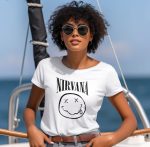 T-shirt femme Nirvana avec un design de Nirvana Smiley Artwork noir