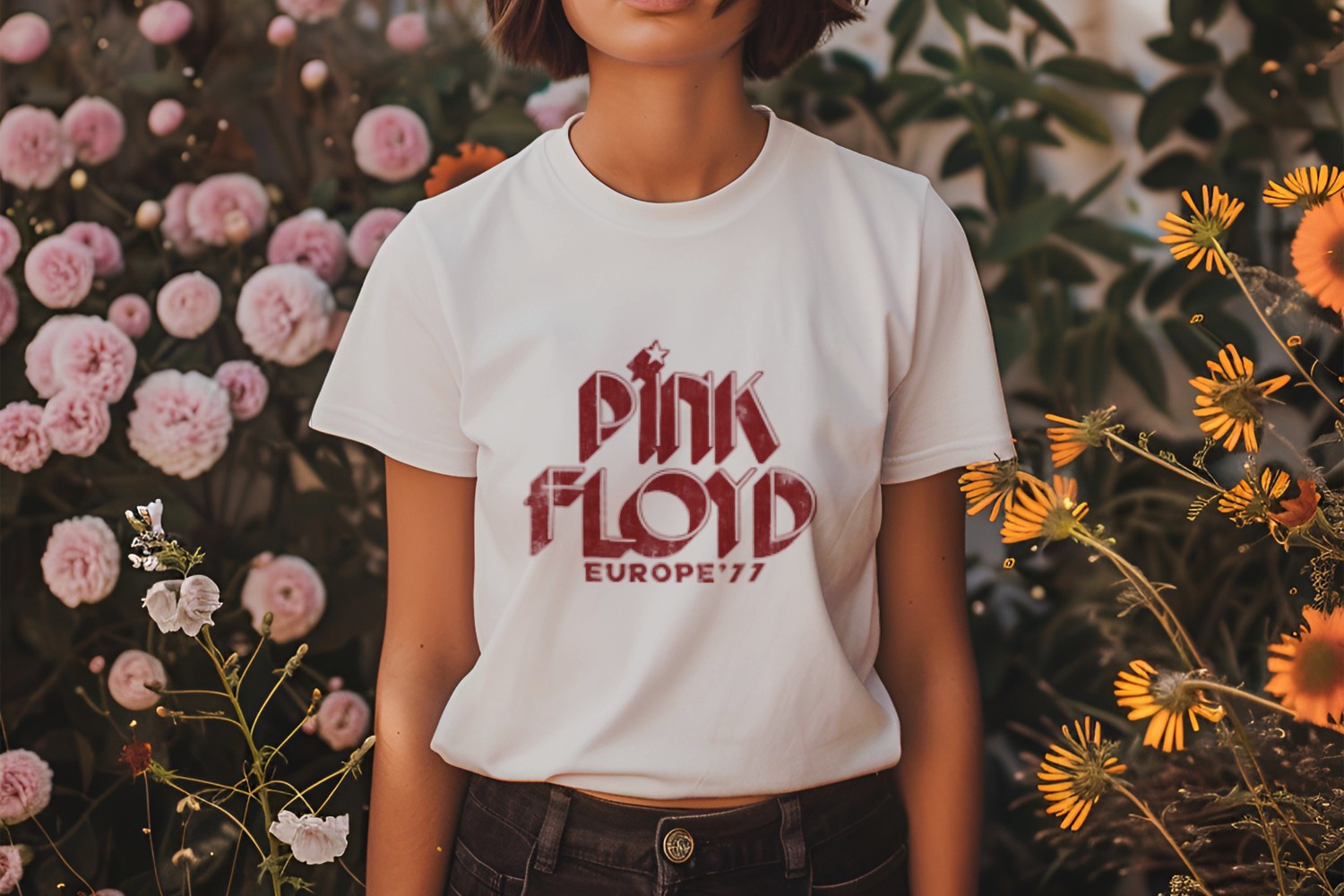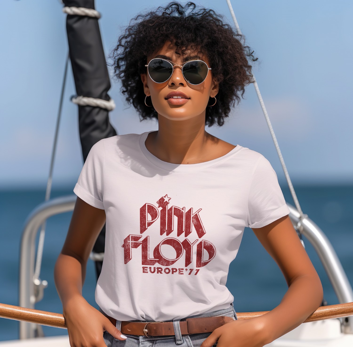 T-shirt femme Pink Floyd avec un design de Pink Floyd Europe 77 rouge