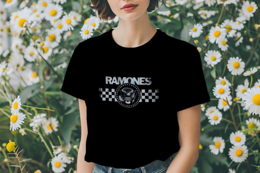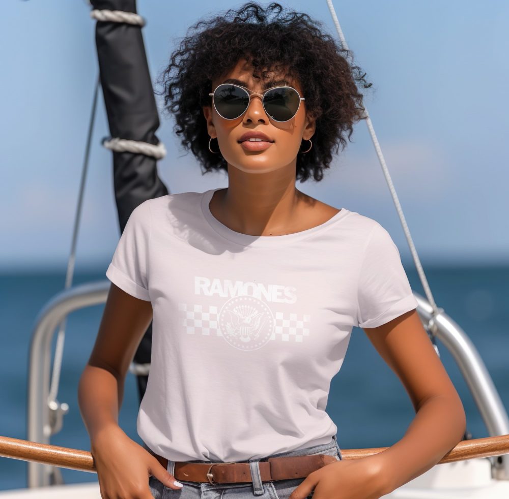T-shirt femme Ramones avec un design de Ramones Hey Ho Lets’s Go blanc