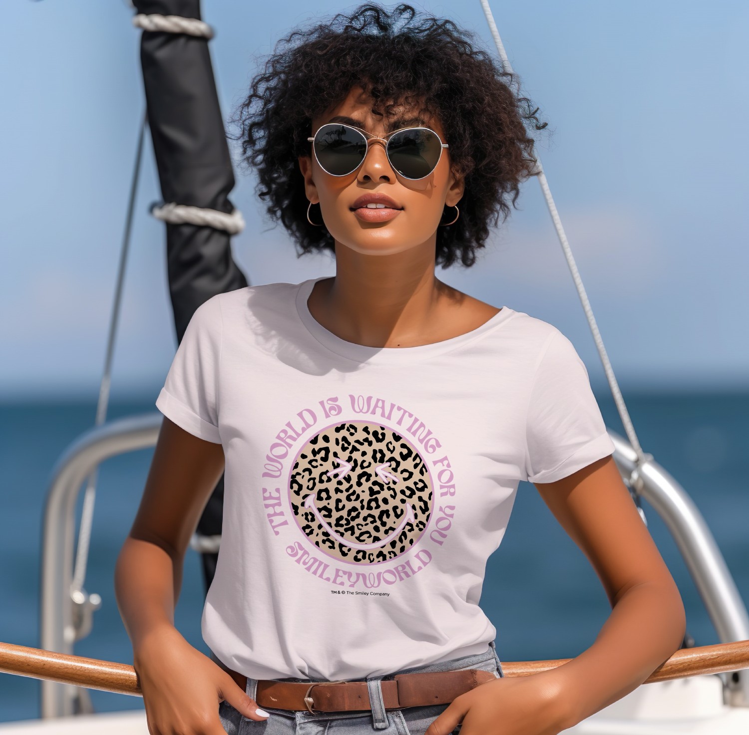 T-shirt femme Smiley World avec un design de Smiley World The World Is Waiting For You