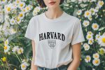 T-shirt Femme Harvard avec un design de Harvard Arc Écusson Used Contour noir