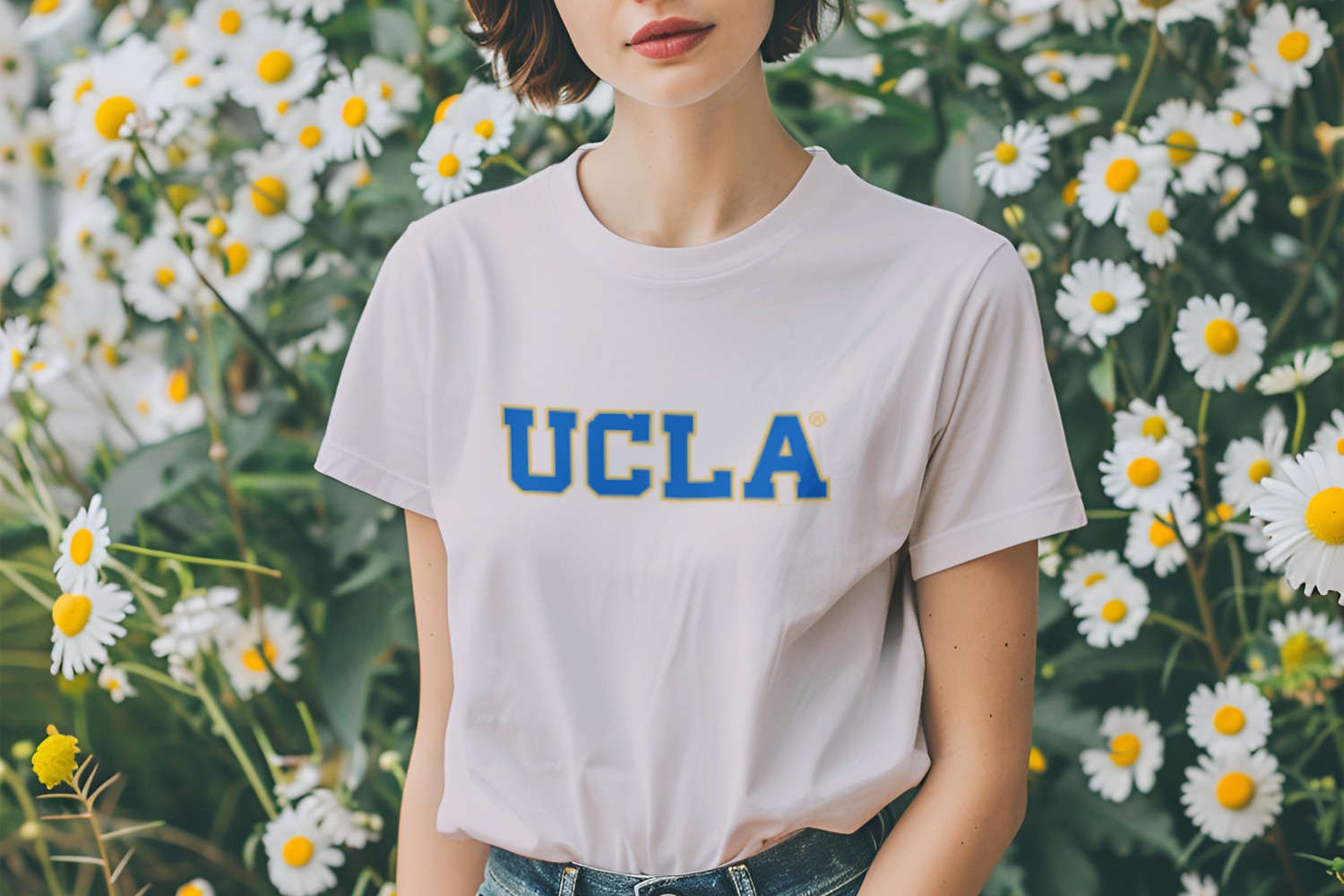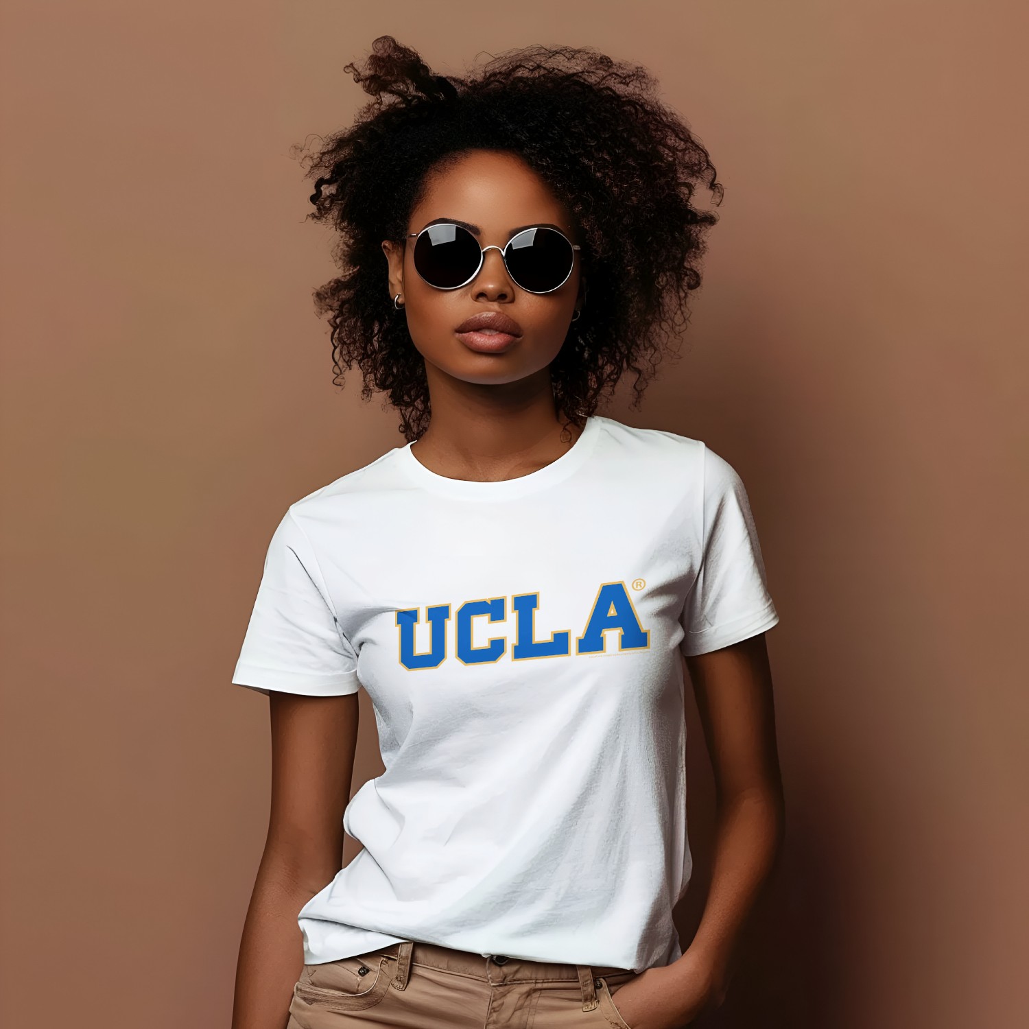 T-shirt Femme UCLA avec un design de UCLA bleu contour jaune