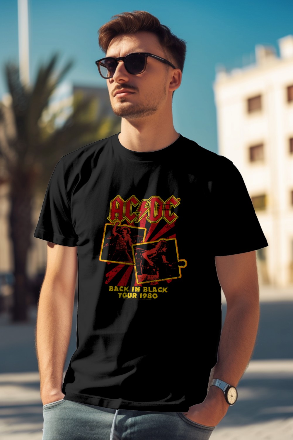 T-shirt Homme ACDC avec un design de ACDC Back in Black Tour 1980