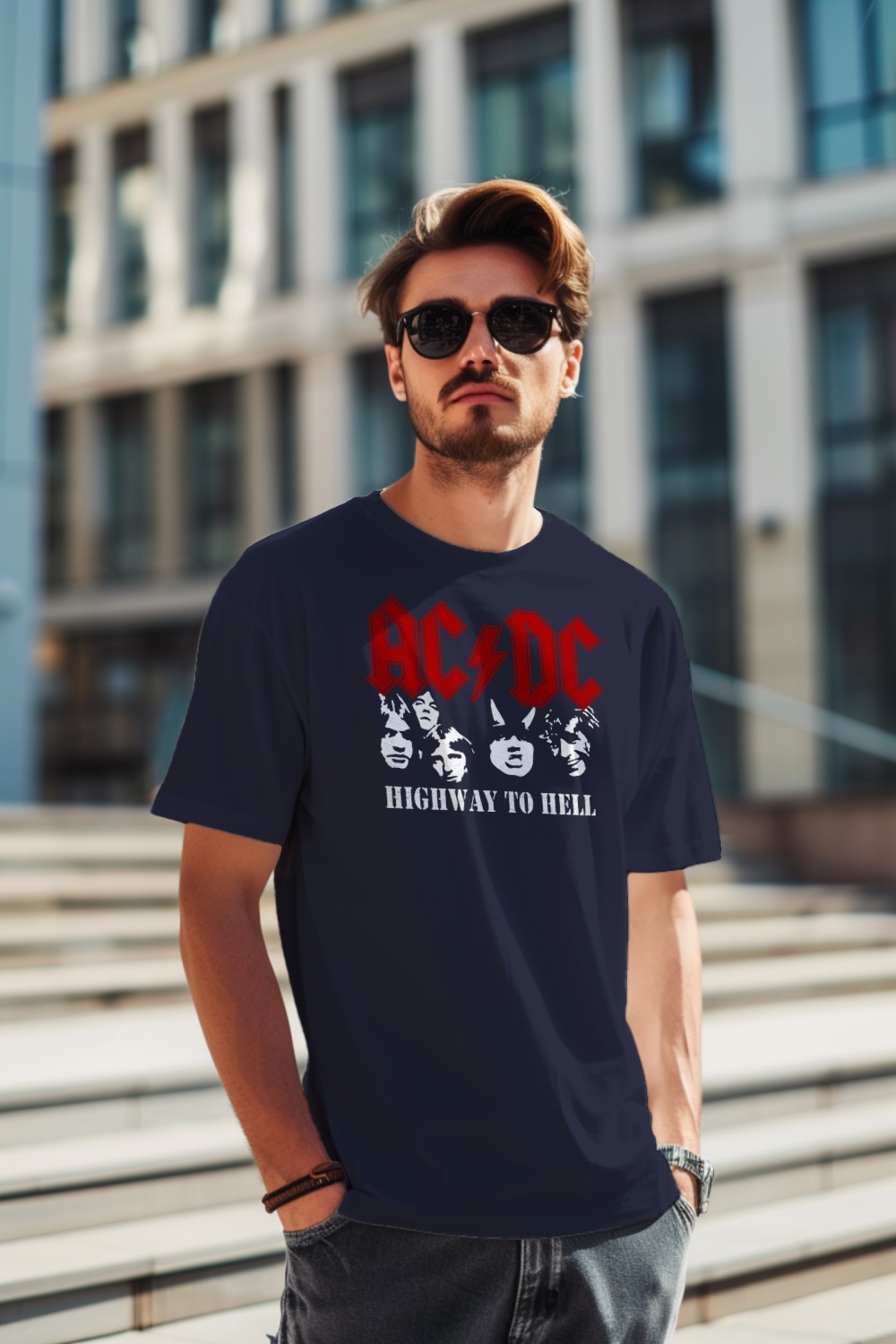 T-shirt homme ACDC avec un design de ACDC Highway to Hell blanc