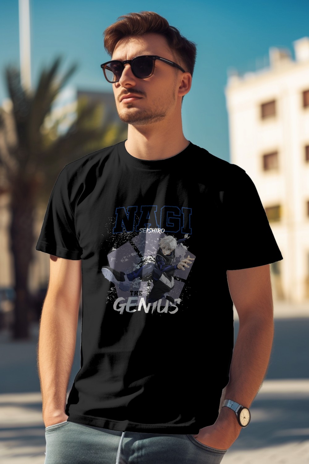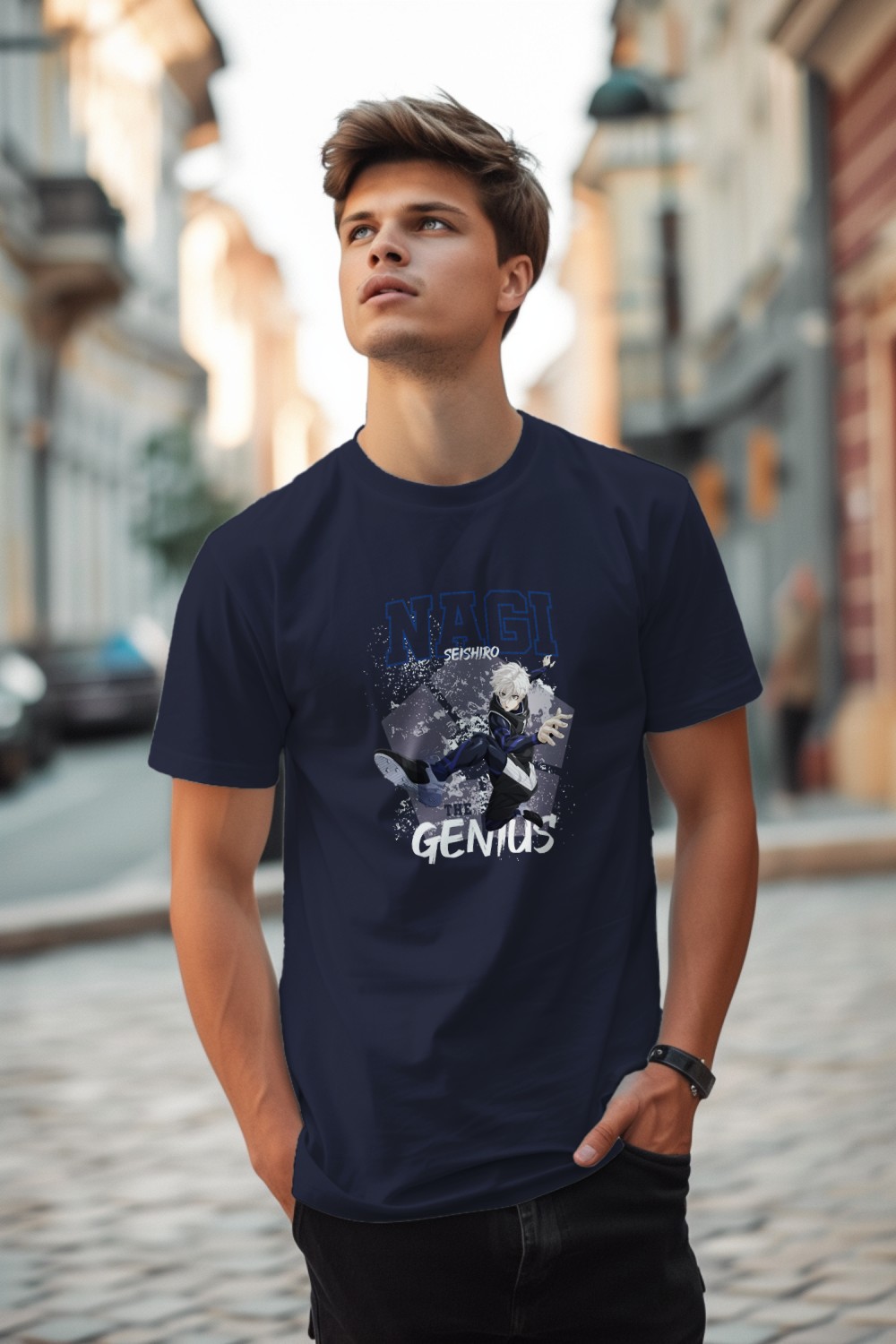 T-shirt Homme Bluelock avec un design de Bluelock Nagi The Genuis blanc