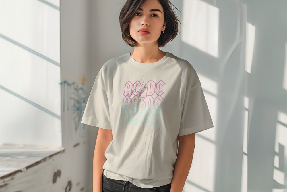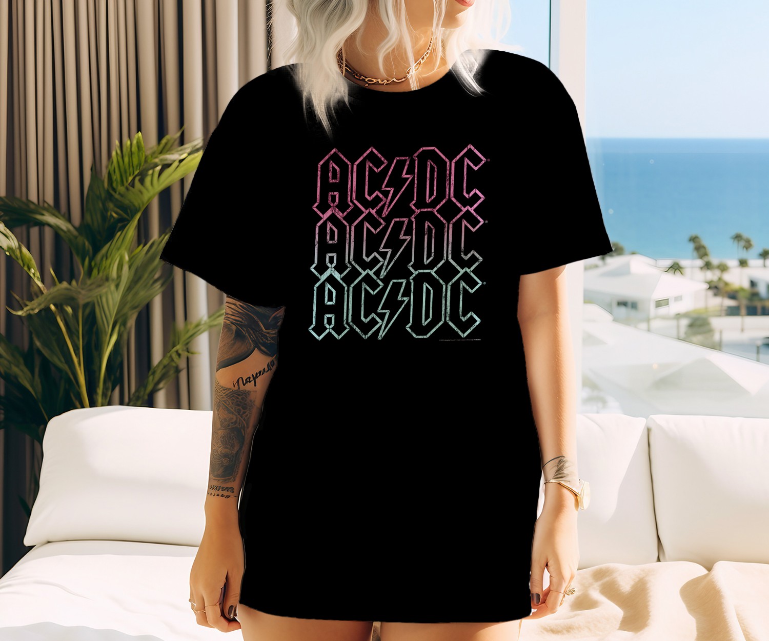 T-shirt oversize coton bio femme ACDC avec un design de ACDC Contour rose bleu