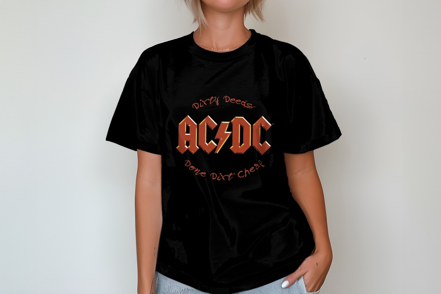 T-shirt oversize coton bio femme ACDC avec un design de ACDC Dirty Deeds Done Dirt Cheap