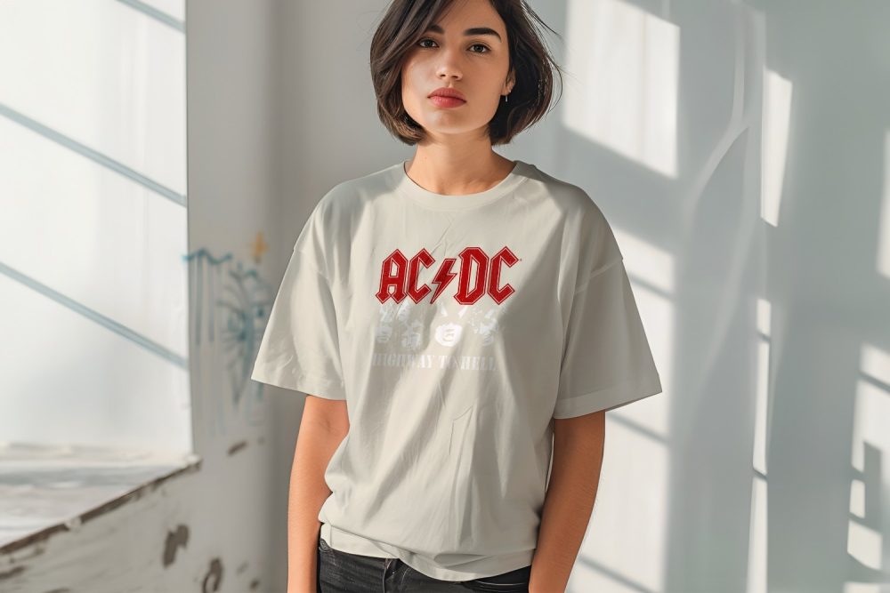 T-shirt oversize coton bio femme ACDC avec un design de ACDC Highway to Hell blanc