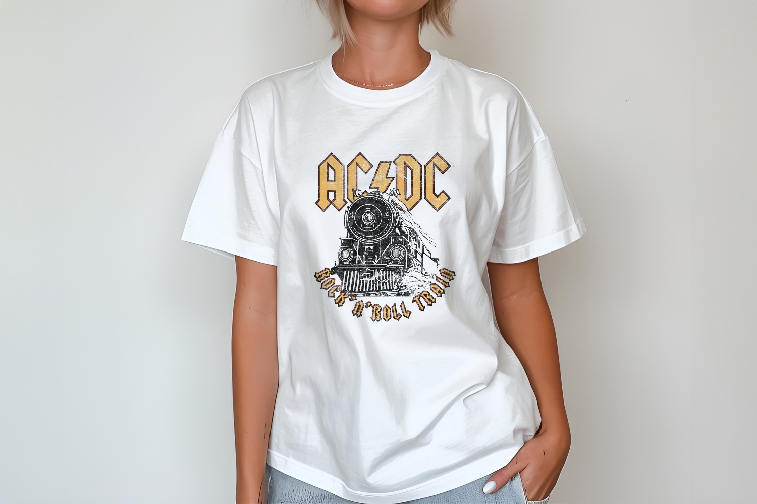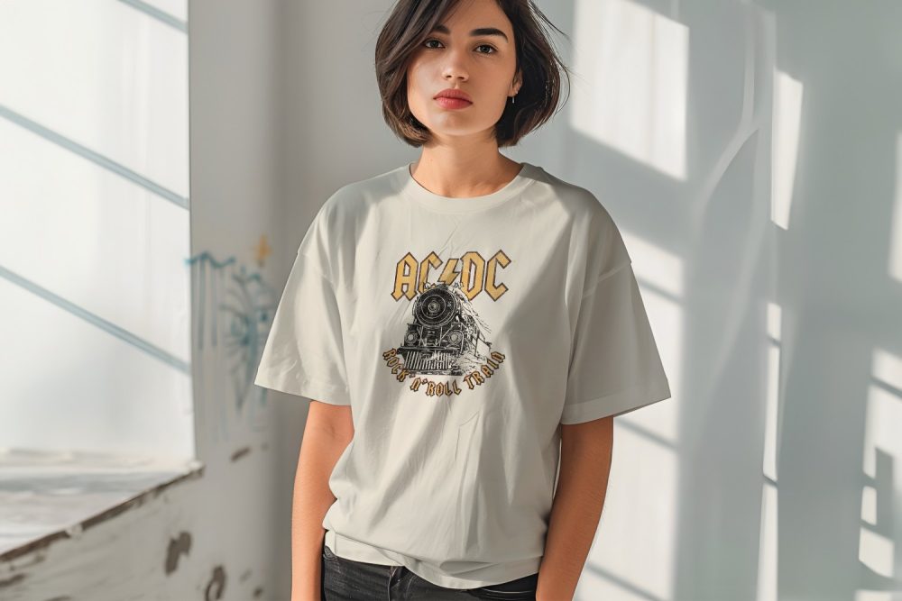 T-shirt oversize coton bio femme ACDC avec un design de ACDC Rock n’ Roll Train noir