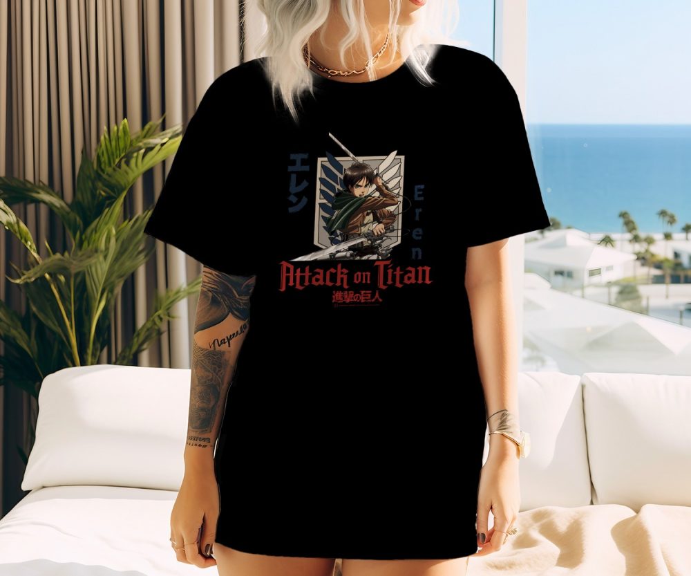 T-shirt oversize coton bio Femme Attack On Titan avec un design de Attack On Titan Eren