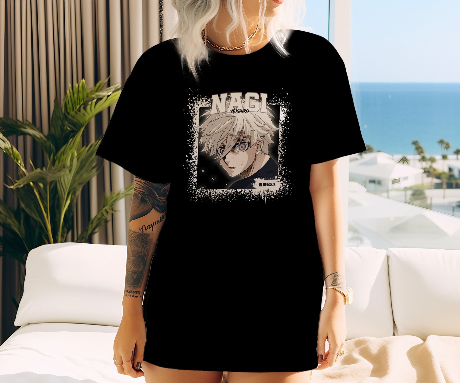 T-shirt oversize coton bio Femme Bluelock avec un design de Bluelock Seishiro blanc