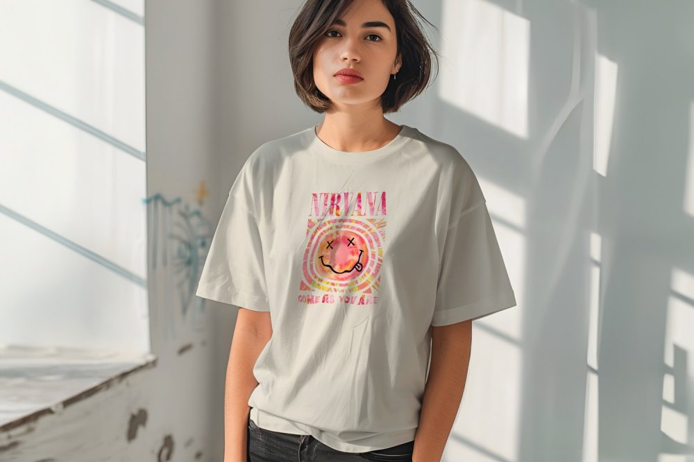 T-shirt oversize coton bio femme Nirvana avec un design de Nirvana Come As You Are rose
