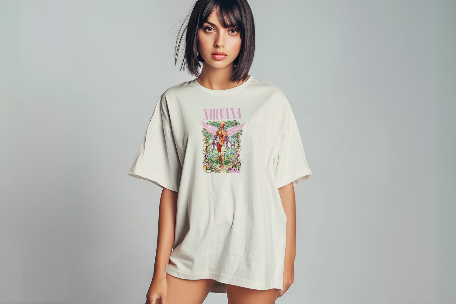 T-shirt oversize coton bio femme Nirvana avec un design de Nirvana In Utero couleurs